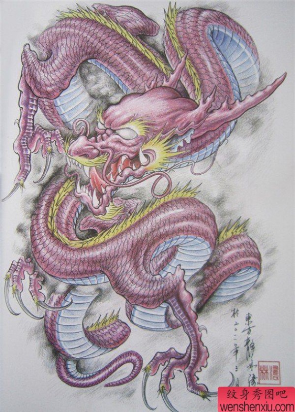 龙纹身手稿_一组老传统黑灰龙手稿纹身图案