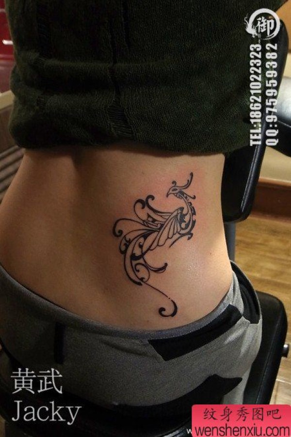 美女腰部漂亮时尚的图腾凤凰纹身图案