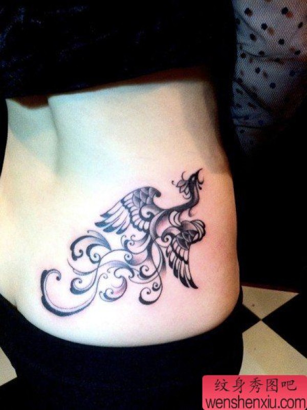 美女腰部时尚时尚的凤凰纹身图案