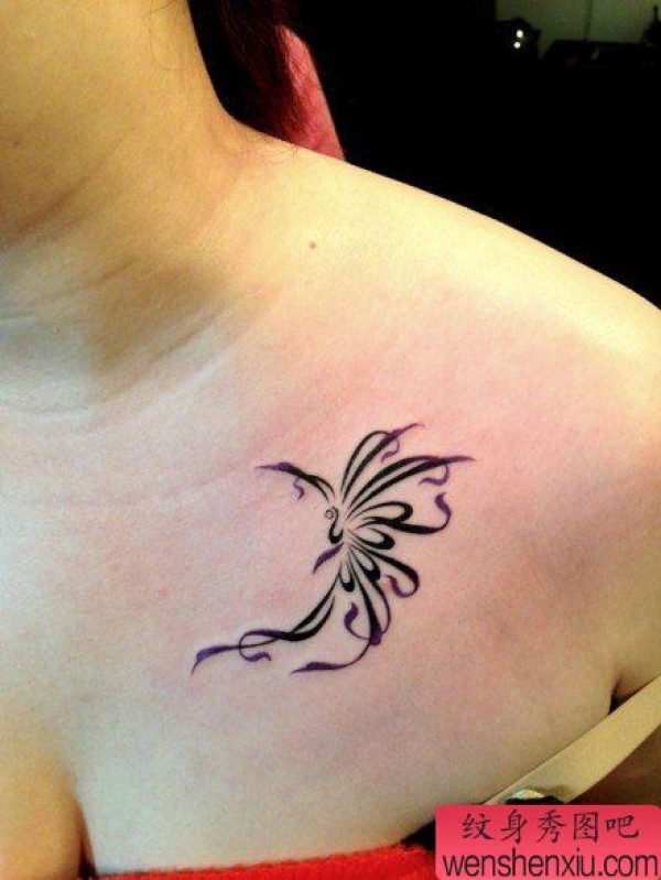 女生喜欢的胸部图腾蝴蝶纹身图案
