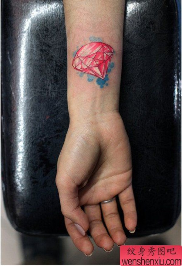 女生手臂小巧精致的粉色钻石纹身图案