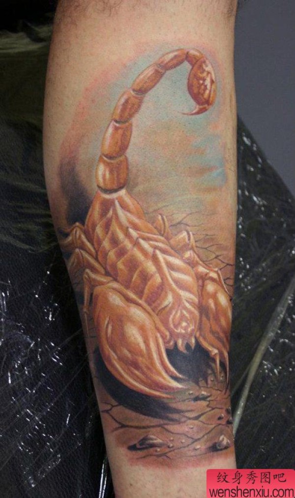 腿部时尚经典的欧美彩色蝎子纹身图案