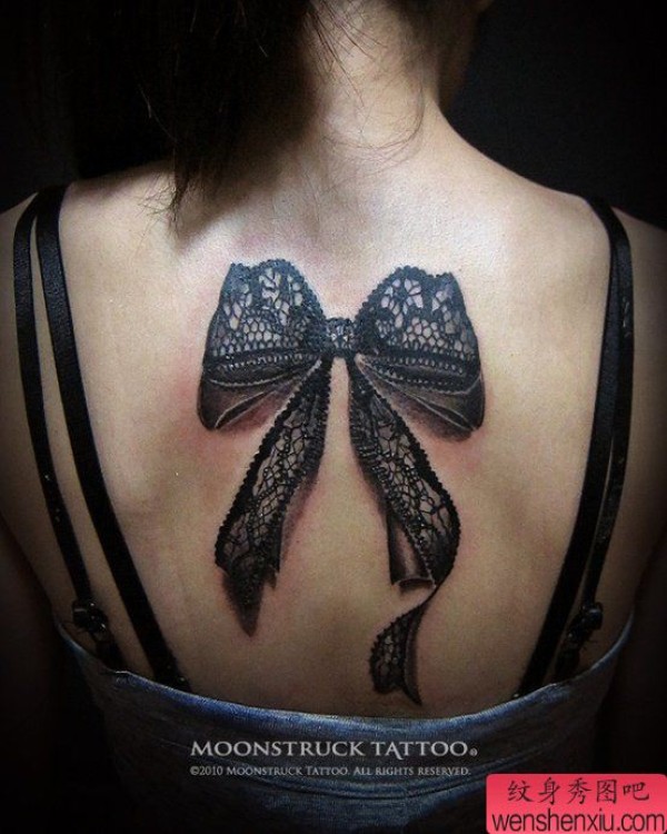 美女背部时尚性感的蕾丝蝴蝶结纹身图案