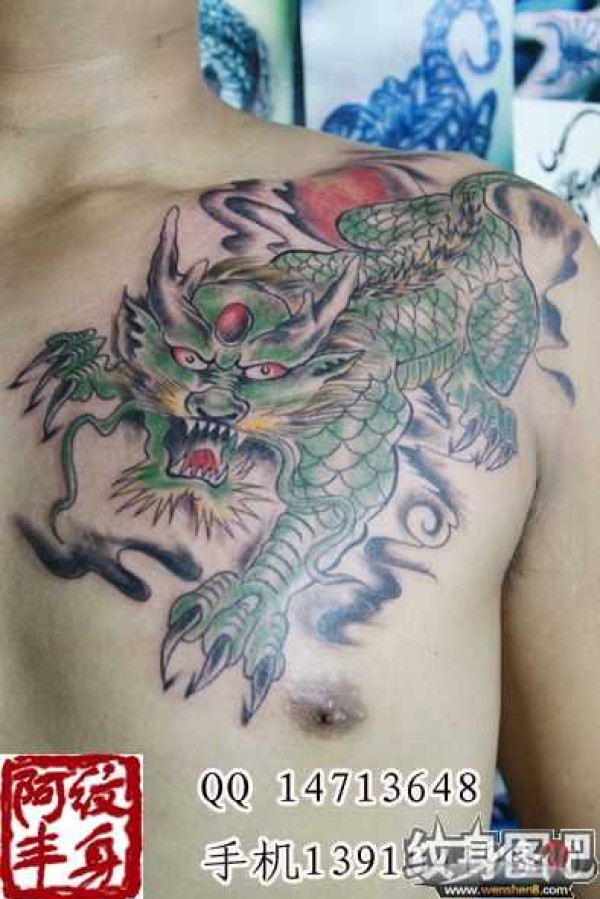 纹身图案胸部男 简洁大方的男生胸部纹身图案