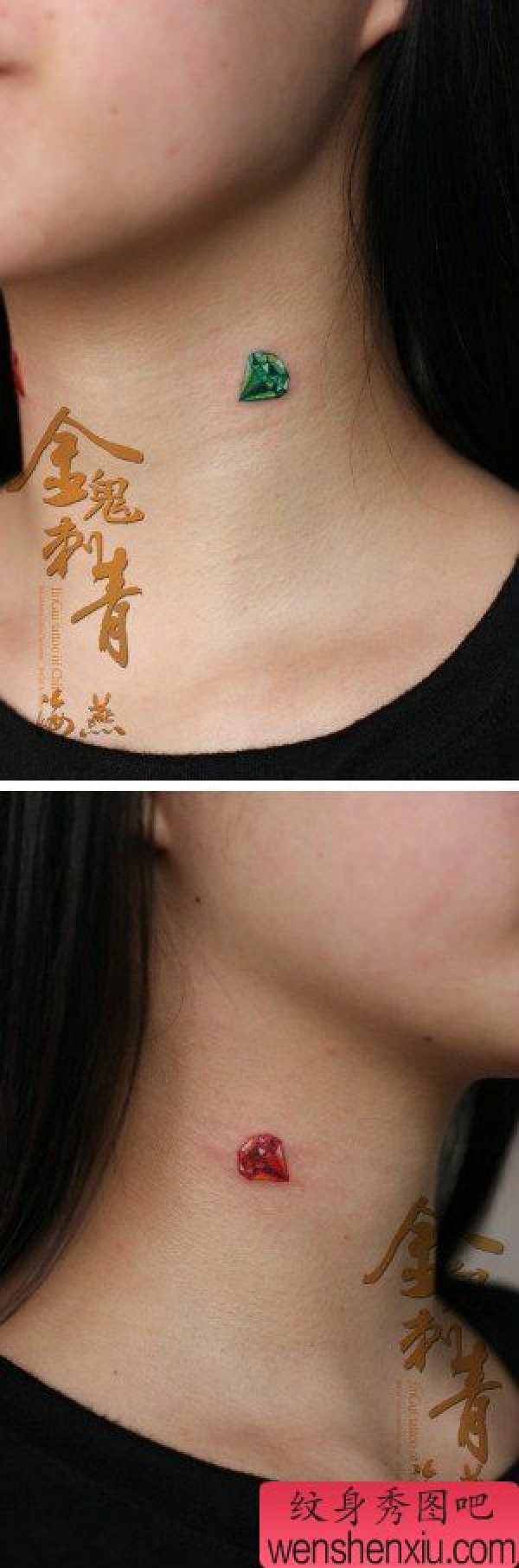 美女脖子时尚漂亮的彩色钻石纹身图案