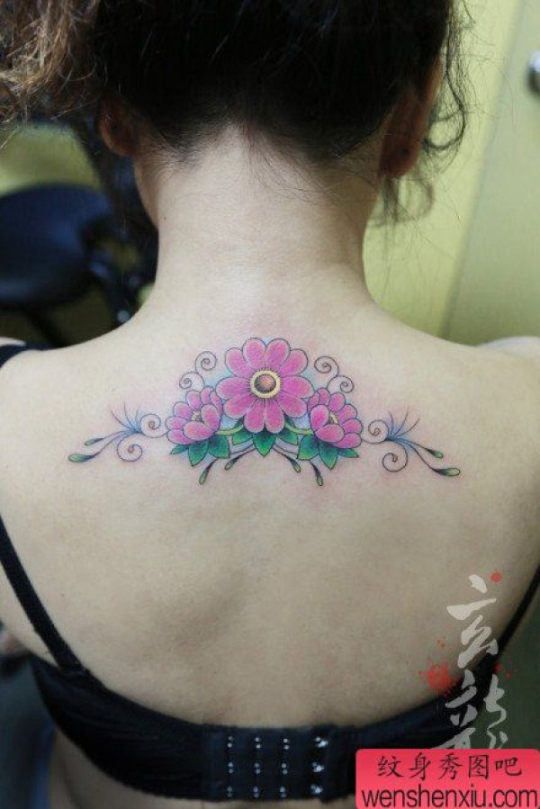 美女背部好看时尚的花卉纹身图案