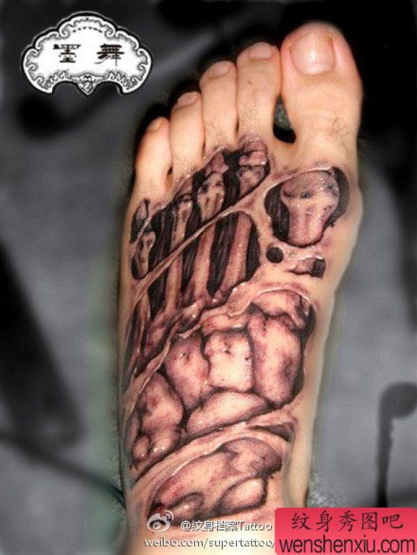 脚部另类超酷的撕皮与骨头纹身图案