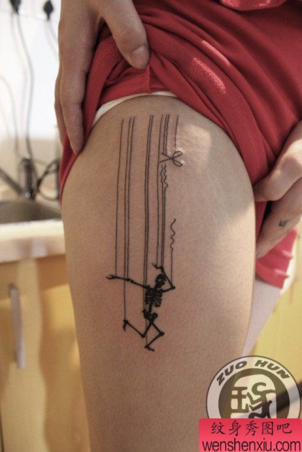 腿部帅气超酷的木偶骷髅纹身图案