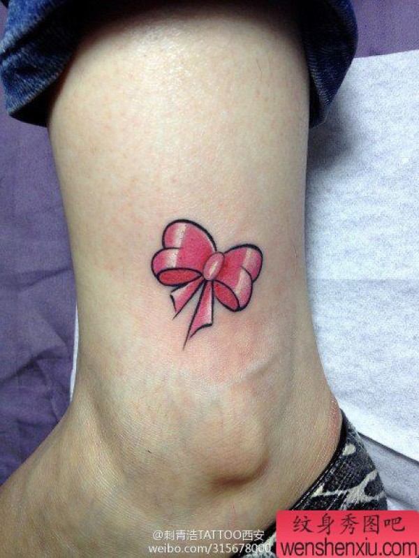 女生脚踝处小巧超酷的蝴蝶结纹身图案