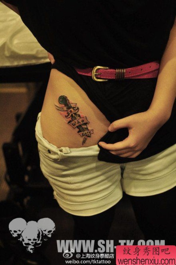 美女腹部经典时尚的宝剑匕首纹身图案