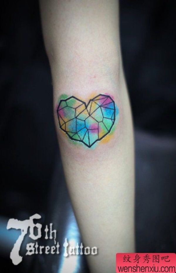 手臂漂亮时尚的爱心纹身图案