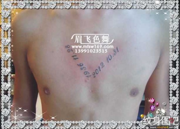 男胸前阿拉伯数字~~~~咸阳纹身~~~眉飞色舞作品、