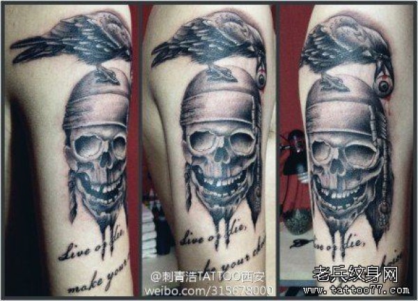 手臂帅气超酷的乌鸦骷髅纹身图案