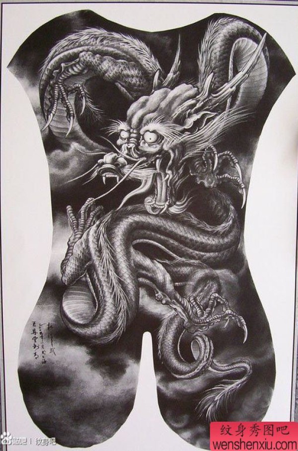 龙纹身手稿_一组老传统黑灰龙手稿纹身图案