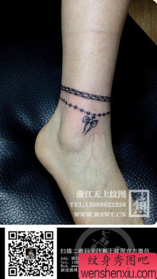 女生脚腕时尚的蝴蝶结脚链纹身图案