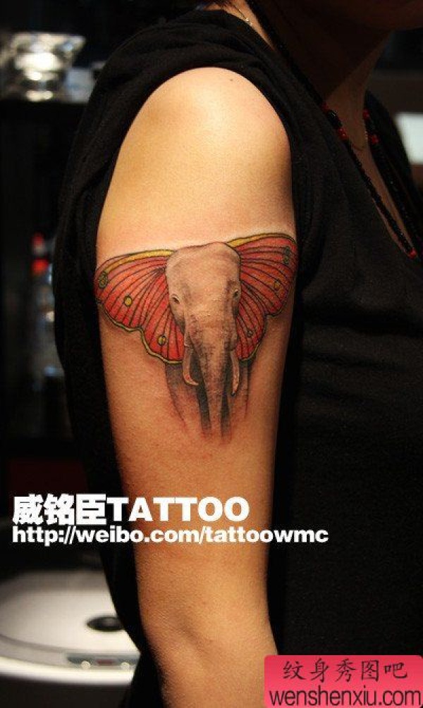 手臂经典的一张大象纹身图案