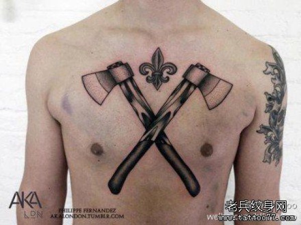 男士前胸霸气超酷的斧头纹身图案