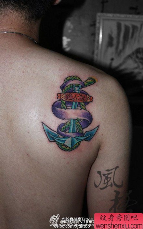 后背时尚时尚的船锚纹身图案