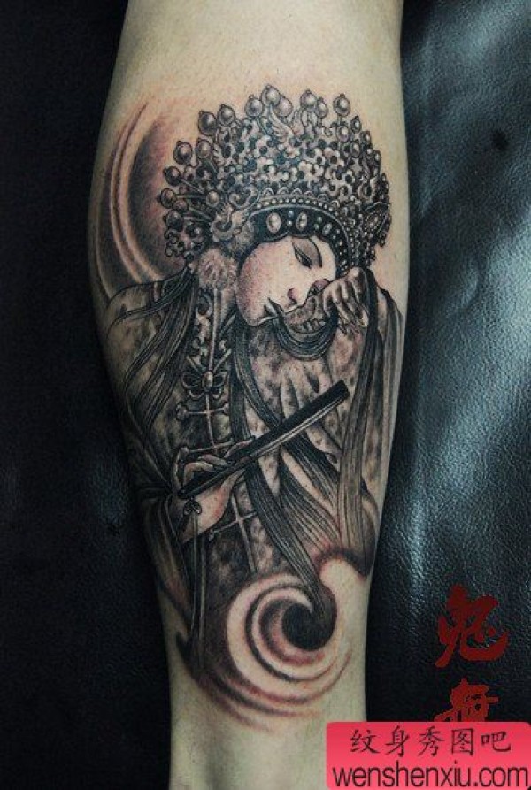 腿部漂亮的美女花旦纹身图案