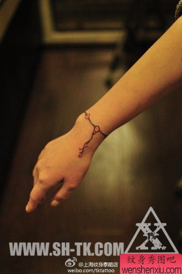 女生手腕精美时尚的手链纹身图案