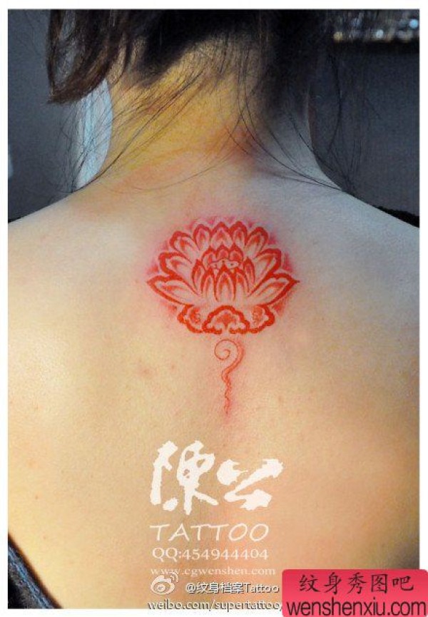 女生后背时尚经典的图腾莲花纹身图案