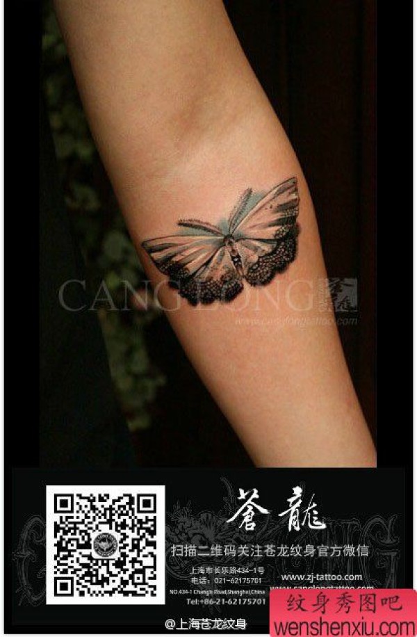 手臂时尚时尚的蕾丝蝴蝶纹身图案