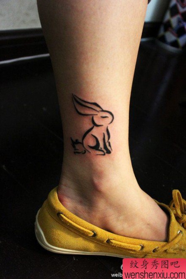 女生腿部可爱时尚的图腾小兔子纹身图案