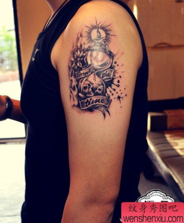 男士手臂经典帅气的沙漏纹身图案