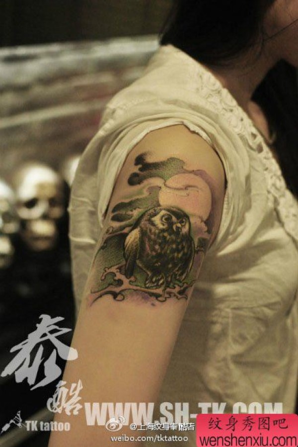 手臂经典时尚的猫头鹰纹身图案