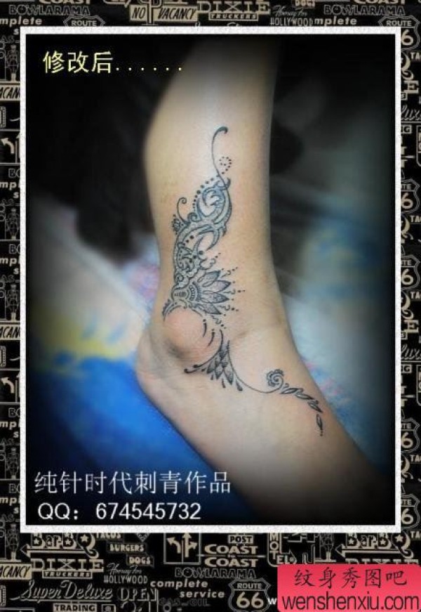 女生脚踝处时尚唯美的图腾藤蔓纹身图案