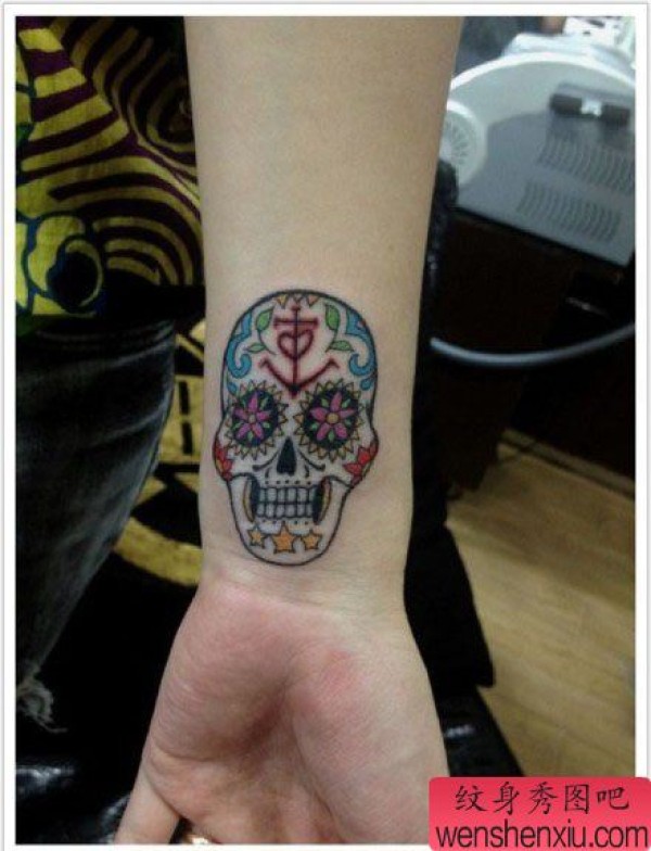 手臂小巧时尚的欧美骷髅纹身图案