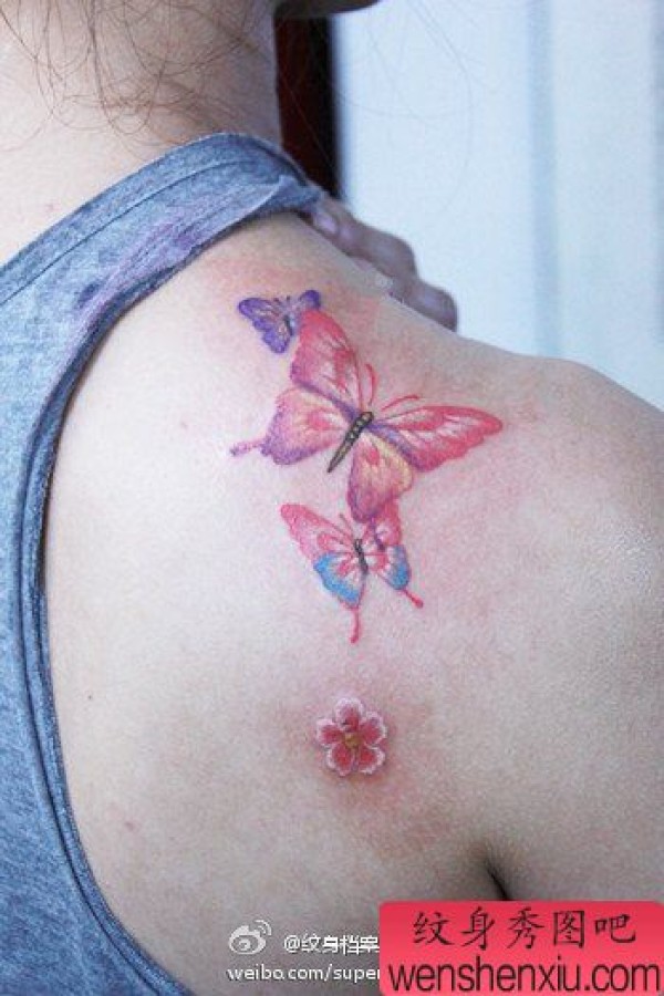 美女肩背时尚漂亮的蝴蝶纹身图案
