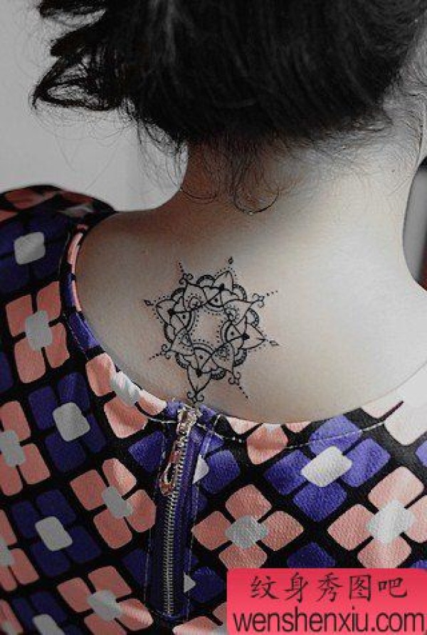 女生后脖子小巧经典的印度风格图腾纹身图案