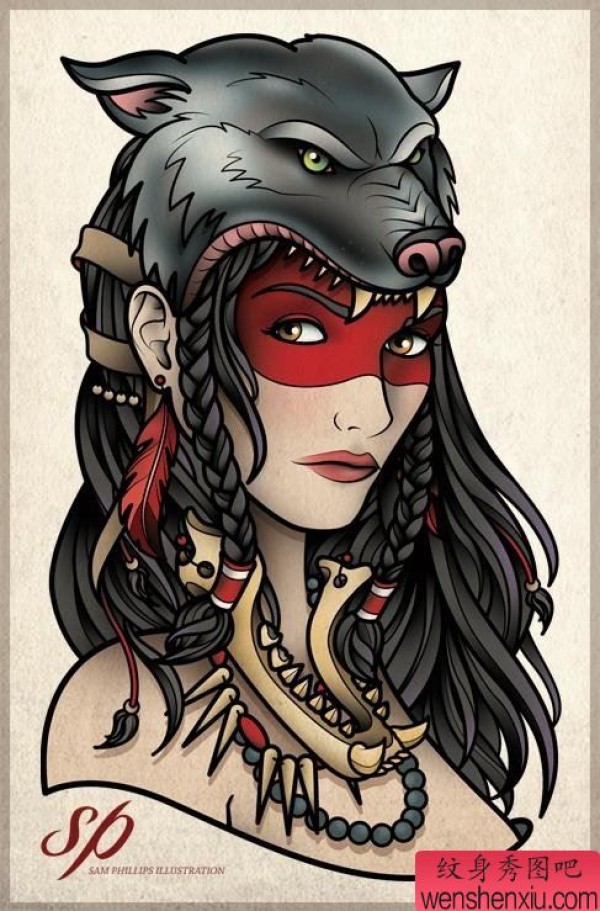 帅气时尚的school风格美女纹身手稿