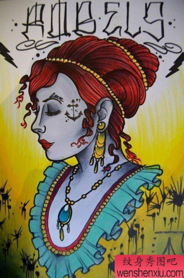 一张时尚精美的欧美美女纹身手稿
