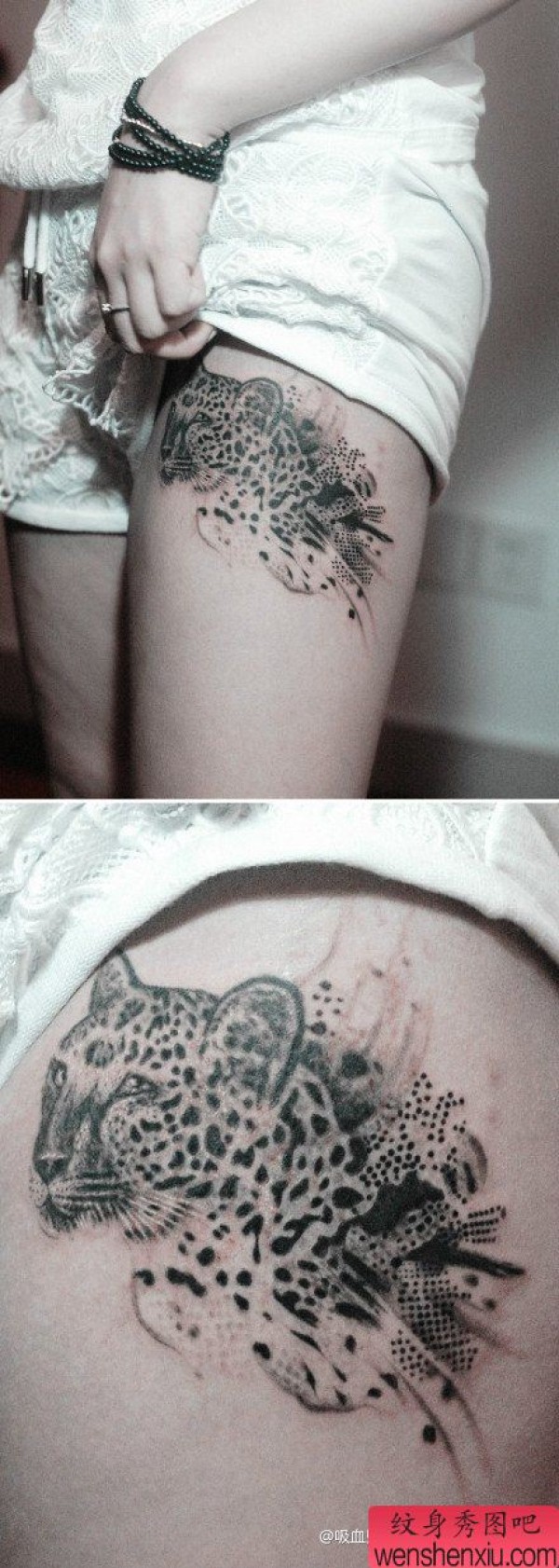 女生腿部经典帅气的豹子纹身图案