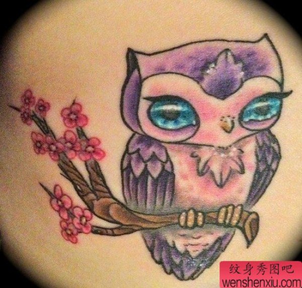 一张可爱小巧的猫头鹰纹身图案