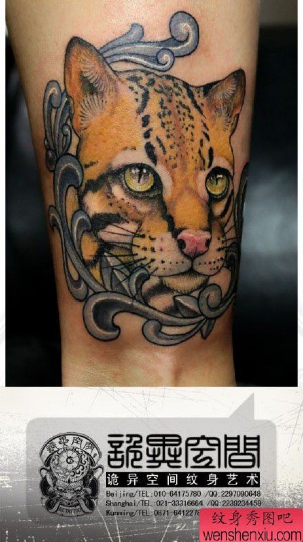 腿部经典时尚的豹子纹身图案