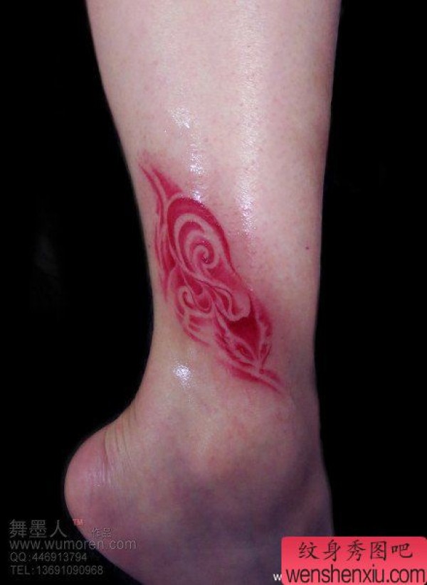 女生脚踝处漂亮的彩色狐狸纹身图案