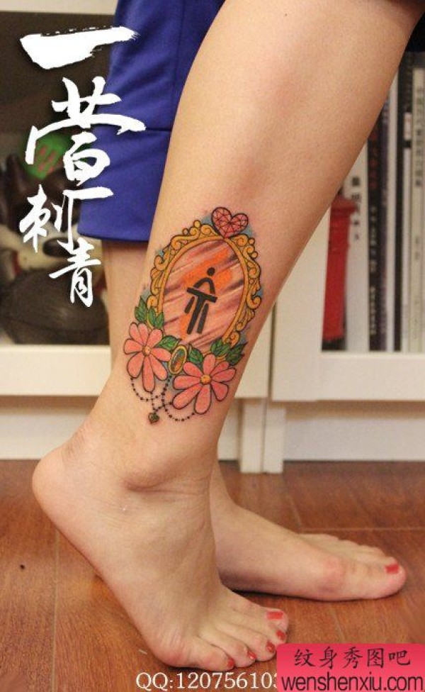 女生腿部时尚简单的镜子纹身图案