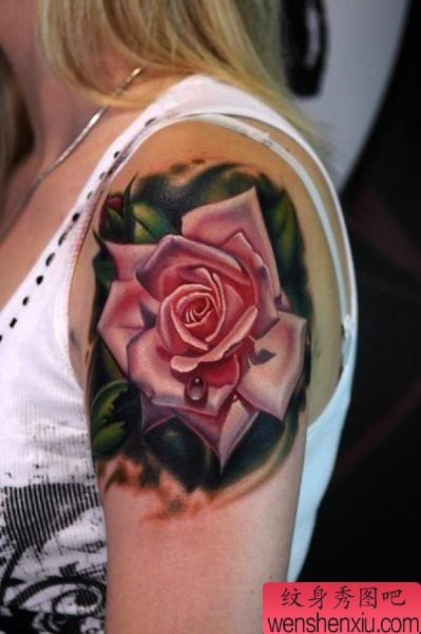 美女手臂时尚精美的欧美彩色玫瑰花纹身图案