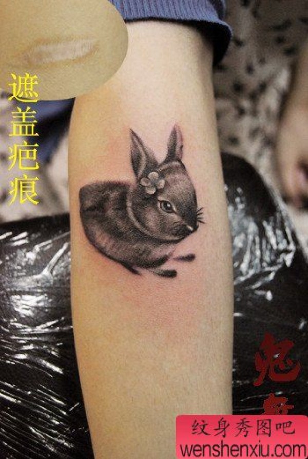 女生手臂可爱小巧的小兔子纹身图案