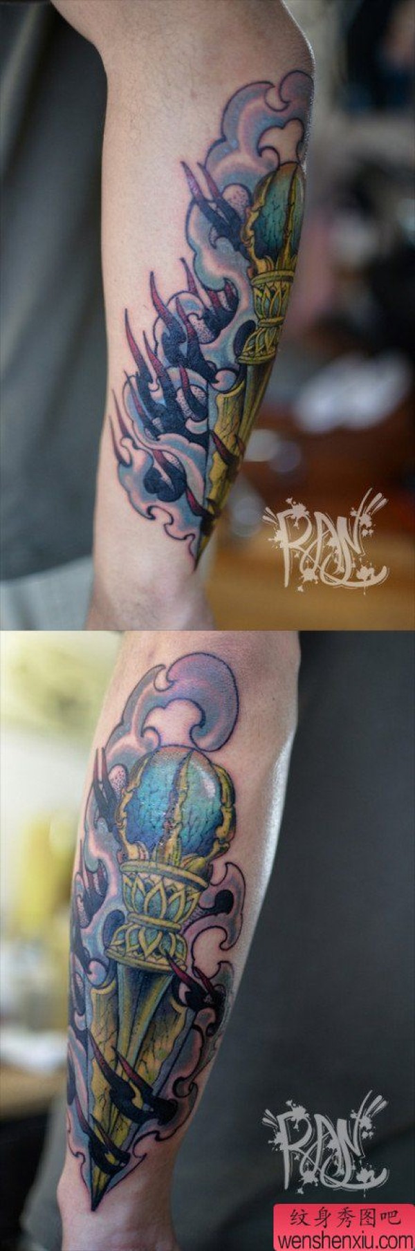 手臂精美时尚的金刚杵降魔杵纹身图案