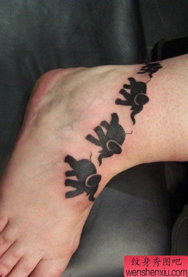 脚背时尚经典的小象纹身图案