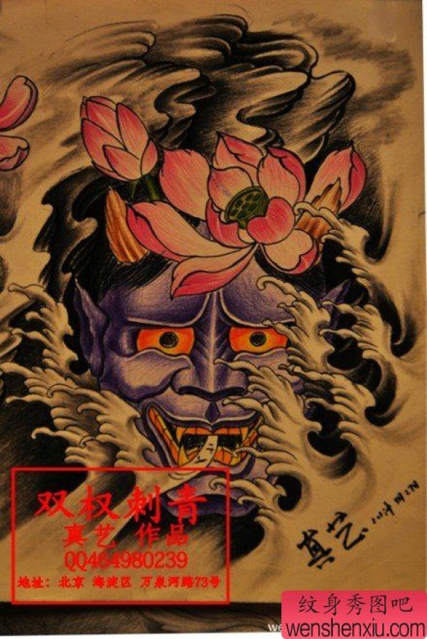 能面万媚纹身手稿_52张日式能剧面具纹身手稿图案素材欣赏