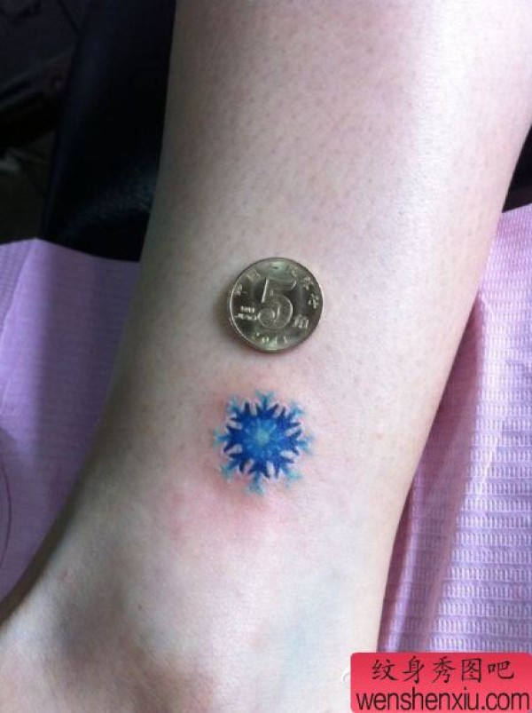 女生腿部好看的小雪花纹身图案