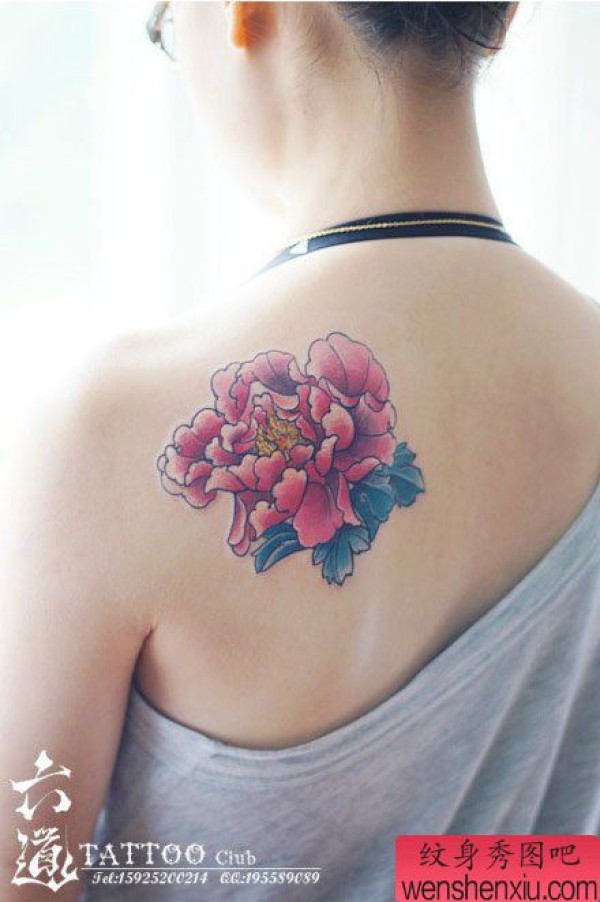 女生后背漂亮唯美的牡丹花纹身图案