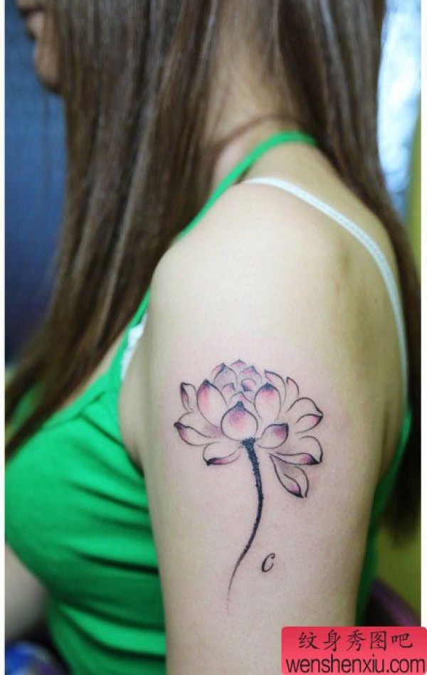 美女手臂唯美的水墨风格莲花纹身图案