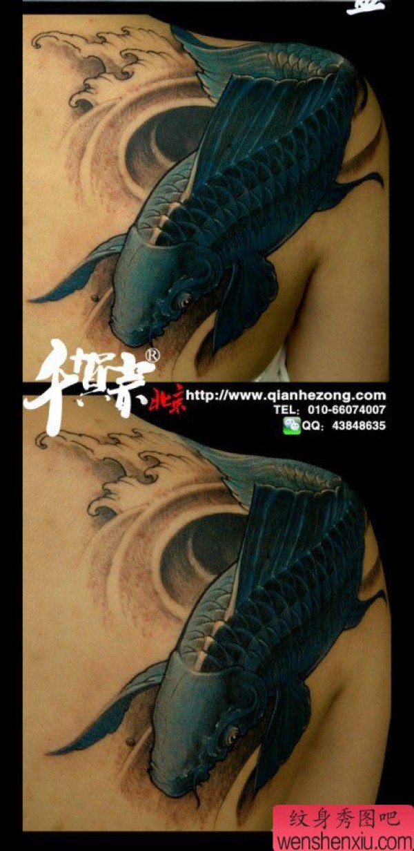 后肩背漂亮时尚的传统鲤鱼纹身图案