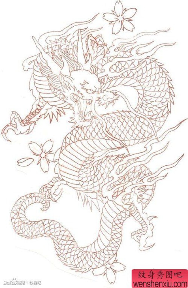 龙纹身手稿_一组老传统黑灰龙手稿纹身图案